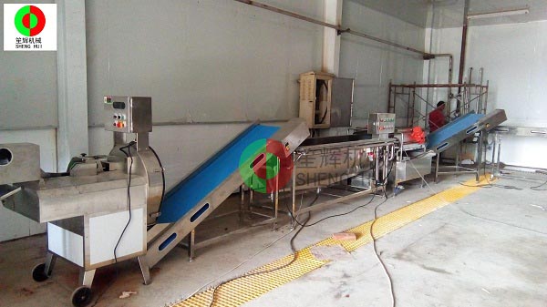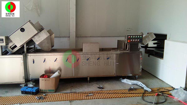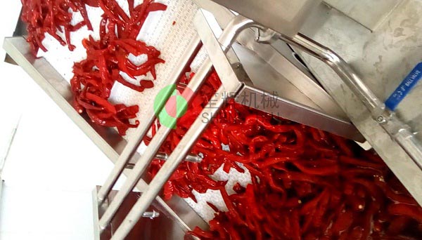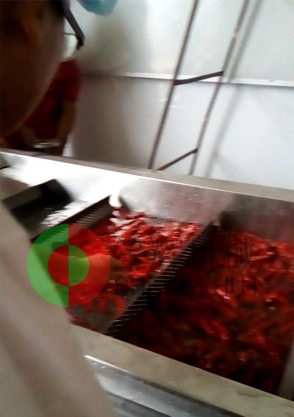 山東德州的YC公司是位于當(dāng)?shù)匾患掖笮屠苯芳庸ぎa(chǎn)業(yè)基地內(nèi),該辣椒城是一個(gè)集辣椒收購(gòu)、儲(chǔ)存、加工、銷售、科研于一體的綜合性專業(yè)市場(chǎng),擁有交易區(qū)、倉(cāng)儲(chǔ)區(qū)、加工區(qū)、服務(wù)區(qū)等多功能區(qū),年成交量7.5億斤,成交額10億元,是山東省辣椒專業(yè)市場(chǎng),也是江北大的辣椒深加工基地。YC公司在本公司非標(biāo)定制的這條生產(chǎn)線,從辣椒的解凍開(kāi)始,經(jīng)我們的QX32氣泡洗菜機(jī)切割前清洗,后平面輸送到SH-165大型切菜機(jī)切割成段,然后用皮帶提升機(jī)提升到渦流洗菜機(jī)深度清洗,震動(dòng)瀝水除雜后再次輸送到SH-165大型切菜機(jī)進(jìn)行深度切碎,最后成品!客戶這個(gè)項(xiàng)目的開(kāi)展,很好地解決了之前人工作業(yè),生產(chǎn)成本高的老大難問(wèn)題,勢(shì)必能在其提高生產(chǎn)能力,節(jié)省生產(chǎn)經(jīng)營(yíng)成本等方面起到作用。