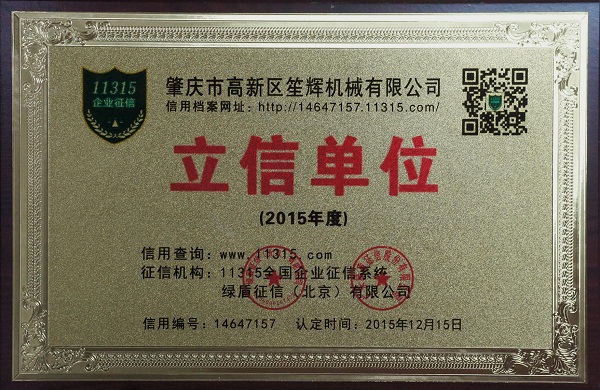 笙輝獲得11315全國(guó)企業(yè)征信系統(tǒng)立信單位