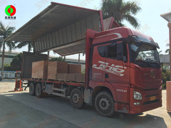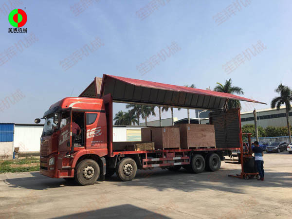 印尼經(jīng)銷(xiāo)定購(gòu)的一批氣泡洗菜機(jī)和毛輥機(jī)配件裝車(chē)出貨