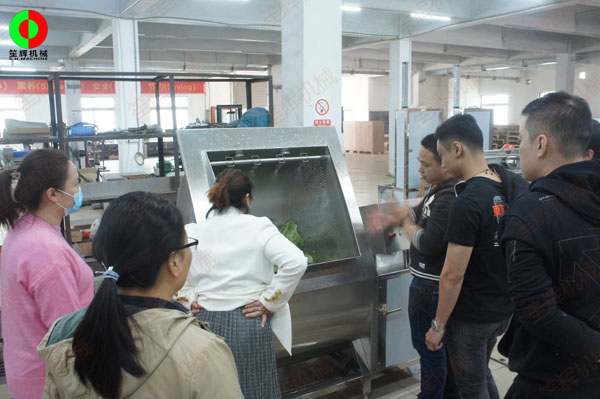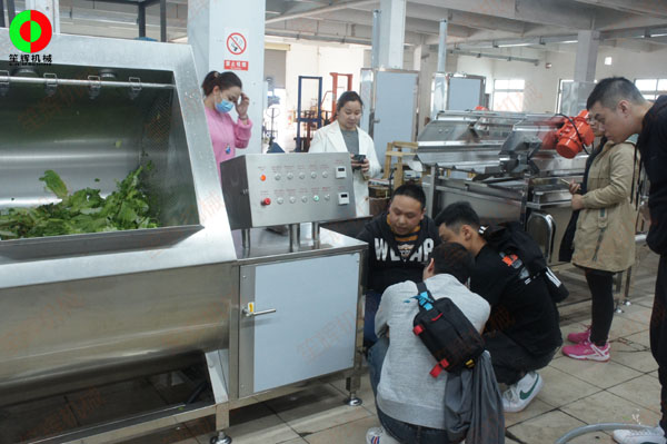 客戶考察我司軟硬件實力,現(xiàn)場測試多功能洗菜機及渦流洗菜機等設備!