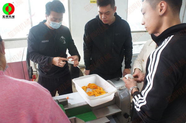 客戶(hù)現(xiàn)場(chǎng)了解瓜果分瓣及切割設(shè)備,最后現(xiàn)場(chǎng)簽定合同交付定金!