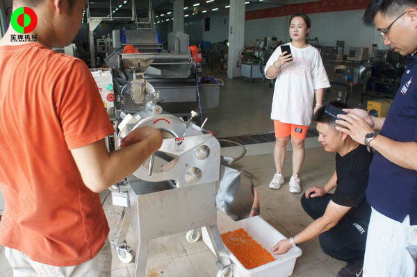 瓜果三維切丁機測試效果滿意,客戶付款購買隨車運走!