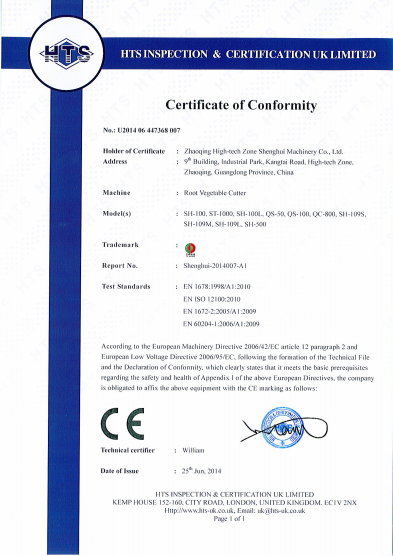 - 葉菜切菜機(jī)獲得CE認(rèn)證