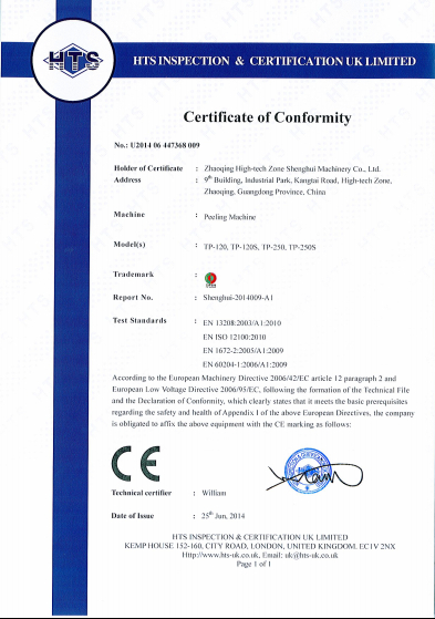 - 瓜果削皮機(jī)獲得CE認(rèn)證