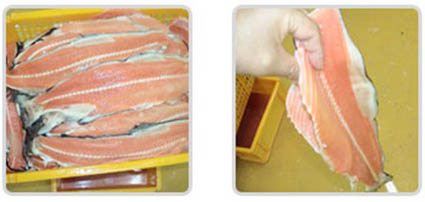 - 產(chǎn)品優(yōu)勢: 片式開魚片機有中型和大型兩種,本機采用刀帶切割方式,刀帶沿著魚的脊骨來切割,切成脊骨一片,左右兩側(cè)魚肉各一片,一共三片,對魚肉和魚骨的損傷較少,大大提高出品率。