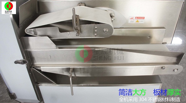 - 產(chǎn)品優(yōu)勢: 本SH-200加大型切菜機(jī),可切葉菜類,如長蔥,蒜苗,韭菜,芹菜,白菜,青菜等,也可切條狀瓜果,如蘿卜,黃瓜,辣椒,茄子,等等。可切片(厚薄度可訂做),切段切條(長短度可調(diào))。輸送帶速度和轉(zhuǎn)刀速度采用變頻器可調(diào),可單獨(dú)控制。一機(jī)多用,輸送帶加寬到200mm,產(chǎn)量更高,適度更廣。皮帶拆卸和安裝都很快捷方便,機(jī)器清洗和保養(yǎng)更容易。這種加大型切菜機(jī)適合大型食品加工廠,餐飲行業(yè),飯?zhí)?,餐飲配送中心使用?