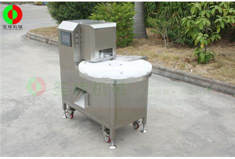 產(chǎn)品可實現(xiàn)根據(jù)切段長度要求將彎曲形狀不規(guī)則的生熟鴨脖、雞脖切段功能??筛鶕?jù)客戶定制各種規(guī)格的切段刀組模具,適用于各種要求的生熟鴨脖、雞脖切段場合。通過更換送料轉(zhuǎn)盤、刀板及上模實現(xiàn)對于生鴨脖、熟鴨脖、生雞脖、熟雞脖、鴨翅、雞翅、鳳爪等異型禽類帶骨產(chǎn)品進行定位切割。本機有著效率高,切割不粘連,占地小,維護簡單、操作簡單等優(yōu)點,廣泛適用于大中小型鹵制禽類休閑食品生產(chǎn)企業(yè)。